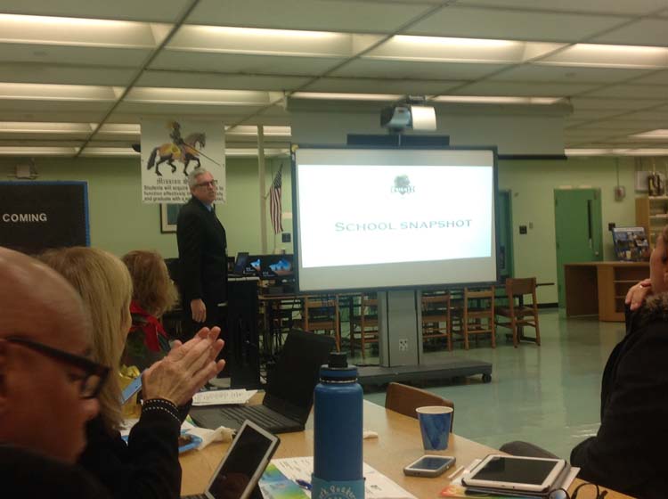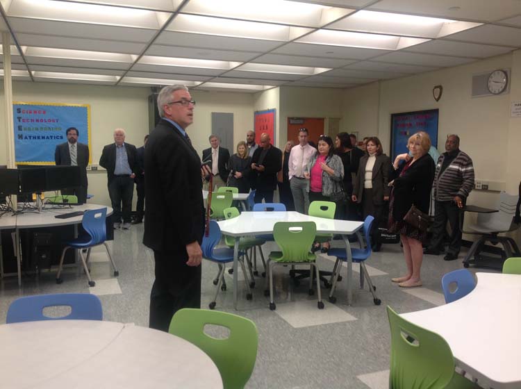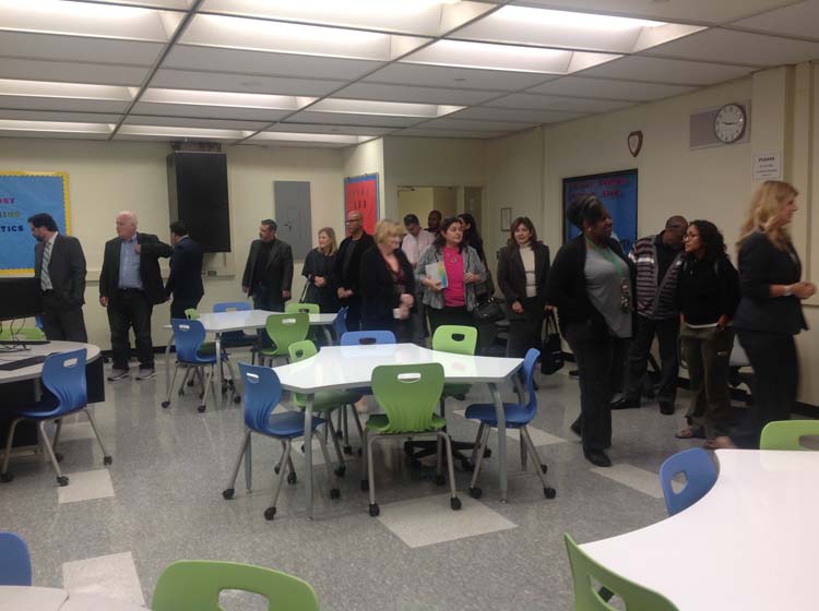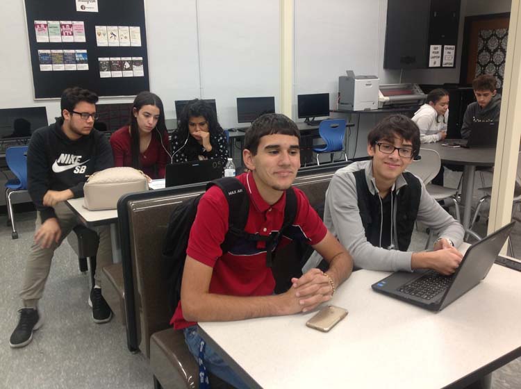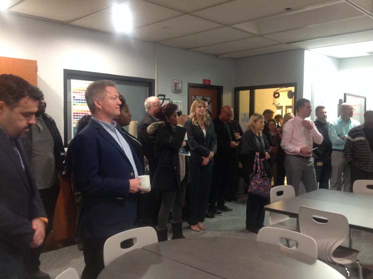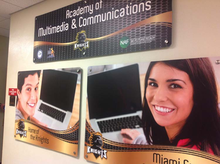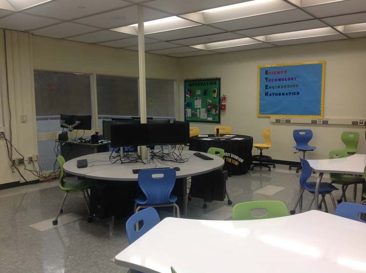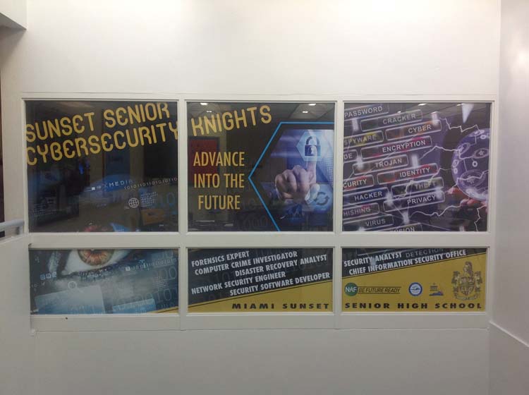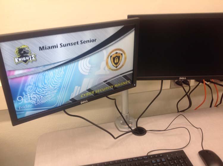 The Miami-Dade STEM NAF Advisory Board met on December 15, 2017 at Miami Sunset Senior High School, which has three STEM NAF Academies of Engineering, Health Sciences, and Information Technology, as well as a NAF academies in the areas of Finance, Hospitality and Tourism. The school’s Hospitality and Tourism culinary students created and served breakfast for the board members. Six STEM academy students shared their internship experiences with the advisory board, and Principal John Lux gave a presentation of the school’s achievements and academy best practices. After which, the board members and staff attended the grand opening of the school’s new Cybersecurity Academy’s computer lab. Their new innovative lab was sponsored by a grant from JPMorgan Chase, and includes double monitors on all student computer stations, furniture and chairs designed to be inviting and facilitate online and collaborative learning. Members also toured the Multimedia and Communications lab, the other strand of Sunset’s NAF Academy of IT which also features furniture and areas designed for collaborative team projects. These students showcased their graphic design work, as well as a team project with students in Russia.